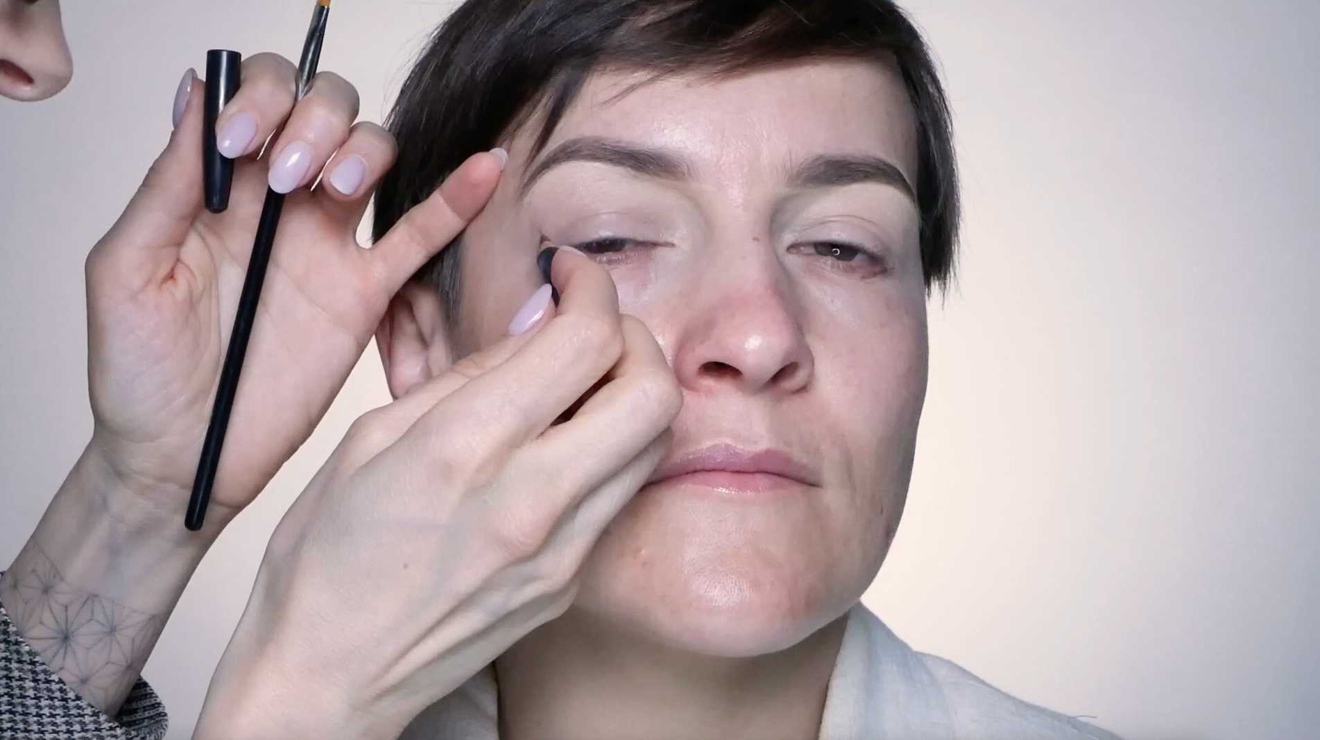 Tworzenie trwałego makijażu korekcyjnego Nauczysz się, jak przygotować skórę pod makijaż i wyznaczać właściwy kształt dla makijażu powieki opadającej.